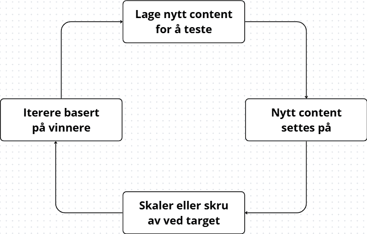 Content testing skal skje løpende og itereres på nye vinkler og konsepter.